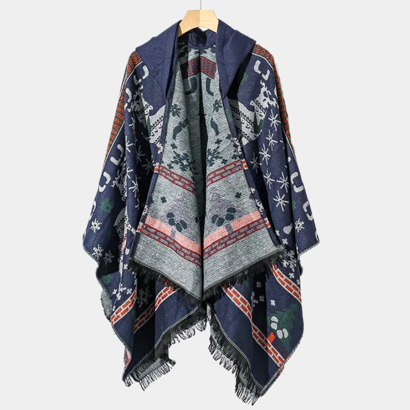 Avec son design inspiré des paysages nordiques, la Cape Homme Hiver vous transporte dans un univers de pure élégance. Les motifs subtils de rennes et de flocons ajoutent une note distinctive à votre tenue. Polyvalente, elle s’accorde aussi bien avec vos sorties décontractées qu’avec vos tenues plus affirmées.