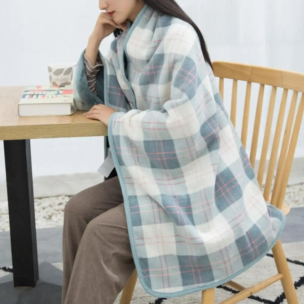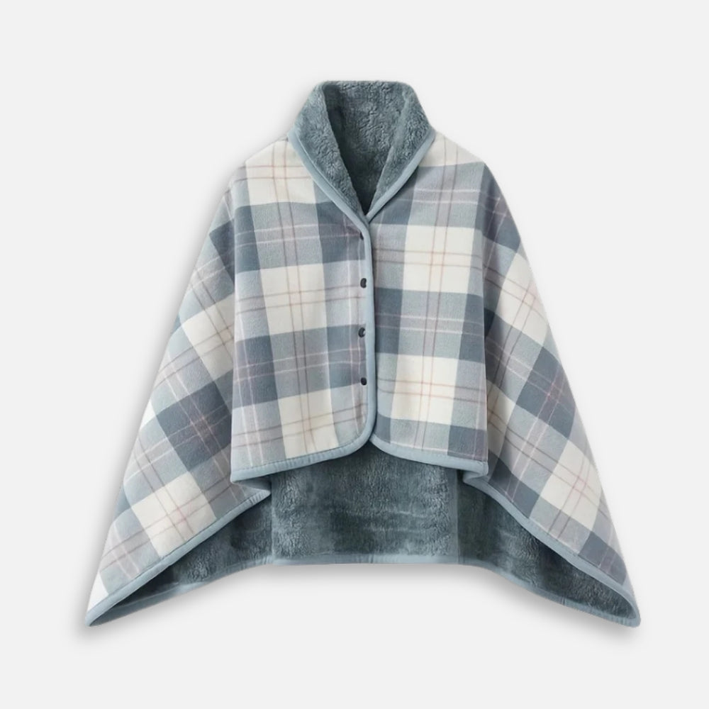 Confort et chaleur assurés avec la Cape Poncho à Carreaux Bleu Clair