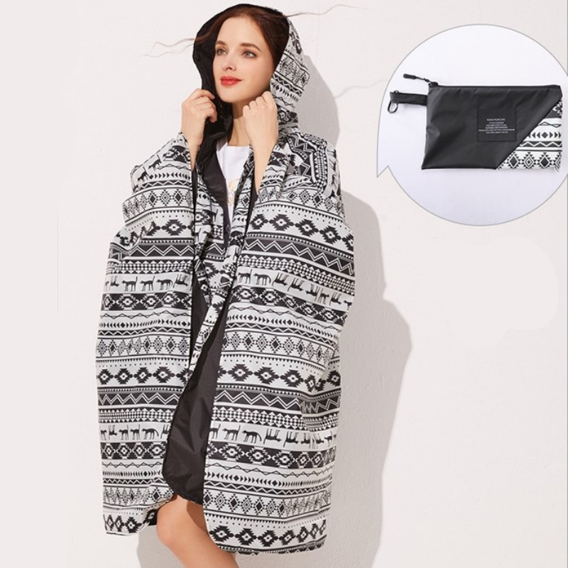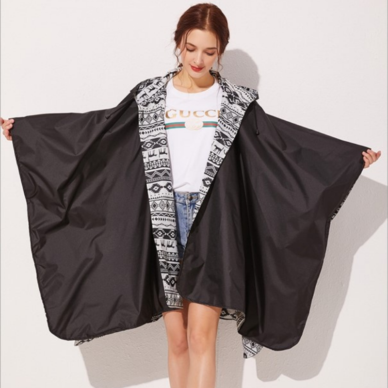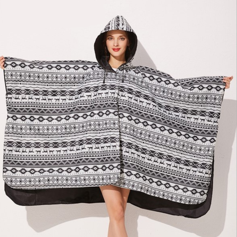 Fonctionnalité et Style Réunis : Poncho Pluie Noir & Blanc Femme